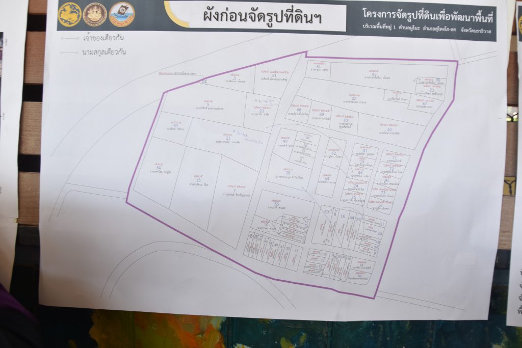 “โดยอาทิตย์หน้าเราจะมีการปรับทะเบียนรายชื่อเจ้าของที่ดินและทำแผนการใช้จ่าย และจะนำกลับมาเสนอคณะกรรมการส่วนจังหวัด เพื่อพิจารณารับคำขอ และจากนั้นวันที่ 28 สิงหาคม จะมีหนังสือถึงเจ้าของที่ดินทุกรายให้แจ้งการยินยอมกลับมาว่ายินดีทำโครงการจัดรูปที่ดิน และเมื่อทุกรายยื่นมากันครบแล้ว เราจะเสนอคณะกรรมการจังหวัดทำการอนุมัติ แล้วเดินหน้าได้เลย” นายสนั่น ผวจ.นราธิวาส กล่าว