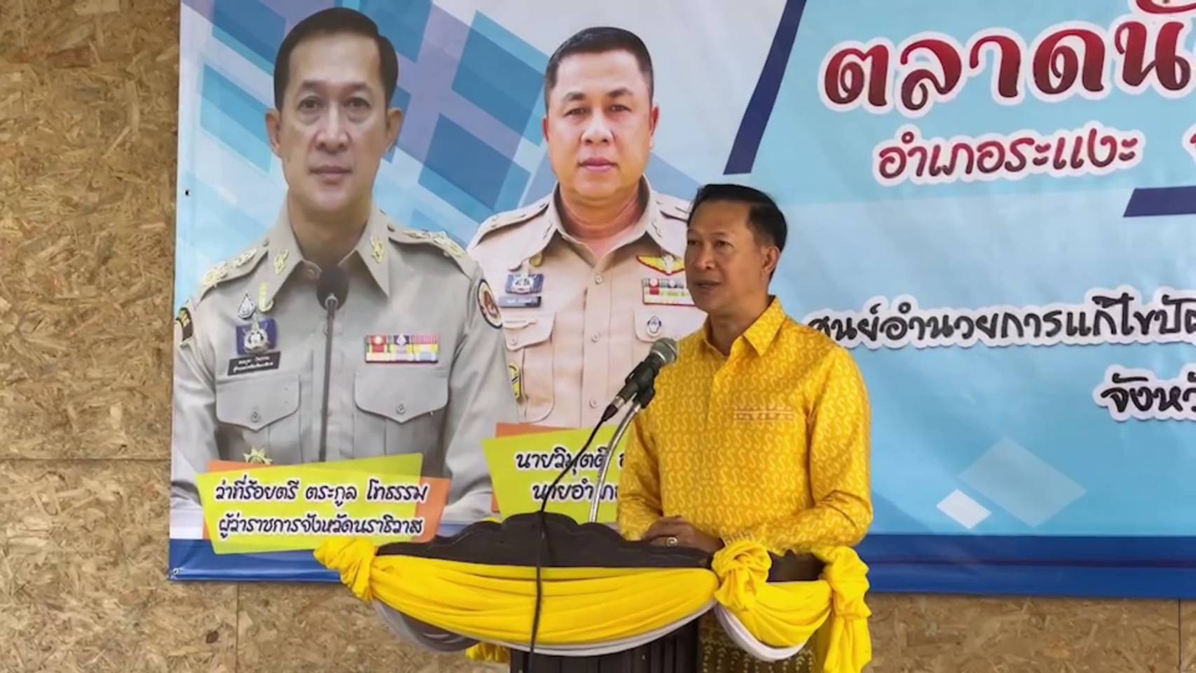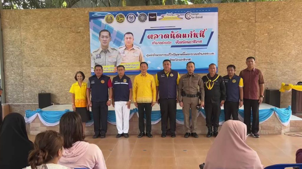 ผู้ว่านราธิวาส พบปะลูกหนี้-เจ้าหนี้ ในตลาดนัดแก้หนี้ อำเภอระแงะ เน้นย้ำทุกภาคส่วนพร้อมช่วยเหลือไกล่เกลี่ยเพื่อแก้ไขปัญหาหนี้นอกระบบ ขานรับนโยบาลรัฐบาล