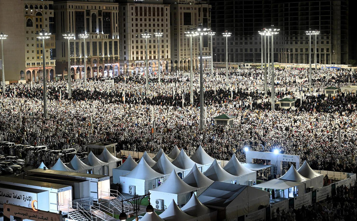 ในช่วงค่ำคืน มัสยิดหลวงก็มีผู้ละหมาดเต็มความจุ โดยมีผู้ร่วมประกอบพิธีอุมเราะห์ที่เดินทางมาถึงมักกะห์อย่างต่อเนื่องตลอดทั้งวัน