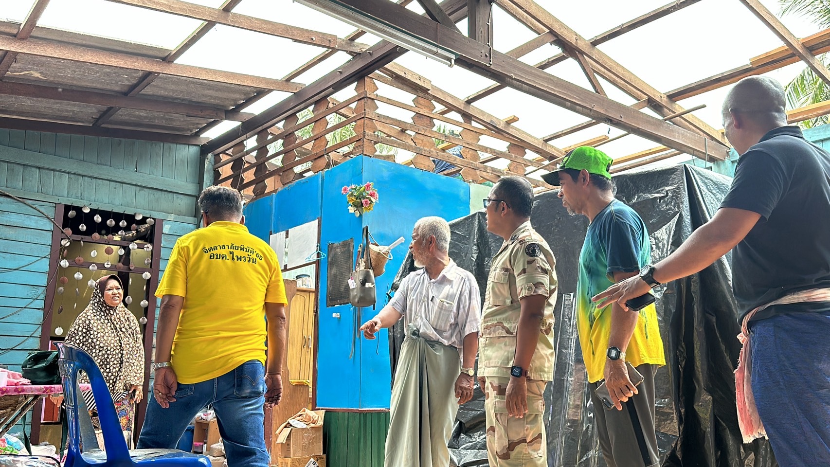 ตากใบอ่วมพายุกระหน่ำบ้านพัง 100 หลังคาเรือนชาวบ้านกว่า 3,000 คนเดือดร้อนหนัก นายอำเภอ นายก อบต.ออกสำรวจให้การช่วยเหลือแล้ว