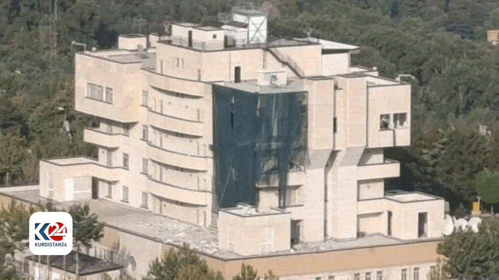 ภาพถ่ายที่เผยแพร่แสดงให้เห็นการระเบิดครั้งรุนแรงเมื่อเช้ามืดวันพุธ ทำให้กระจกแตกและผนังบางส่วนของอาคารพังถล่มลงมา เจ้าหน้าที่อิหร่านระบุว่า ดูเหมือนว่าจะสร้างความเสียหายเพียงเล็กน้อยเท่านั้นของตัวอาคาร ซึ่งน่าจะเกิดจากขีปนาวุธ