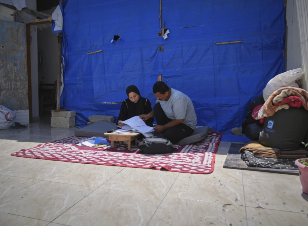 บางคนพยายามเรียนต่อผ่านการเรียนรู้ออนไลน์ แต่ไม่ใช่เรื่องง่ายในฉนวนกาซา ซึ่งไม่มีไฟฟ้าส่วนกลางมาตั้งแต่เริ่มสงคราม ชาวปาเลสไตน์ต้องใช้แผงโซลาร์เซลล์หรือเครื่องปั่นไฟที่หายากเพื่อชาร์จโทรศัพท์ และอินเทอร์เน็ตก็ไม่เสถียร