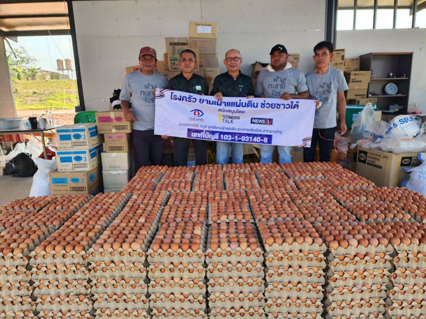 ธนาคารอิสลามแห่งประเทศไทย (ไอแบงก์) โดย ดร.ทวีลาภ ฤทธาภิรมย์ กรรมการและผู้จัดการธนาคาร ด้วยความร่วมมือกับสภาเครือข่ายช่วยเหลือด้านมนุษยธรรม สำนักจุฬาราชมนตรี และสถานีวิทยุโทรทัศน์กองทัพบก ช่อง 5 (ททบ.5) เปิดศูนย์ประสานการรับบริจาคเงินเพื่อสนับสนุนภารกิจช่วยเหลือ ตามโครงการ “ให้เพื่อส่งต่อ รับเพื่อกลับคืน” โดยเงินที่ได้รับบริจาคทั้งหมดจะถูกรวบรวมและส่งมอบให้สภาเครือข่ายช่วยเหลือด้านมนุษยธรรม สำนักจุฬาราชมนตรี หรือหน่วยงานภาครัฐ ตลอดจนเครือข่ายอื่นเพื่อนำไปจัดซื้อสิ่งของจำเป็นและสนับสนุนการทำงานช่วยเหลือทั้งในช่วงน้ำท่วมและการฟื้นฟูหลังน้ำลด ทั้งนี้ นายสุรพล เค้าภูไทย ผู้บริหาร บริษัท เอส.ดับบลิว.ฟู้ดเทค จำกัด และบริษัท โอโว่ ฟู้ดเทค จำกัด ลูกค้าพันธมิตรของธนาคารได้ให้การสนับสนุนอาหารสด แก่ อาจารย์ปานเทพ พัวพงษ์พันธ์ ประธานมูลนิธิยามเฝ้าแผ่นดิน รายการ สนธิ Talk และสถานีข่าว News1 ประกอบด้วย รายการไข่สด 15,000 ฟอง จำนวน 500 ถาด ไข่ต้มปอกเปลือก 5,000 ฟอง จำนวน 50 ถัง และไข่รวมเหลวพาสเจอร์ไรซ์ 250กก. จำนวน 50 แกลลอน โดยมีนายสะรี หัวเมือง ผู้อำนวยการฝ่าย ฝ่ายพัฒนาเศรษฐกิจและสังคม 5 จังหวัดชายแดนภาคใต้ และนายพิเชต โอคง ผู้จัดการสำนักงานเขต 2 สำนักงานเขตสงขลา ฝ่ายกิจการสาขา 2 เป็นผู้แทนลูกค้าธนาคารอิสลามแห่งประเทศไทย ส่งมอบให้กับมูลนิธิยามเฝ้าแผ่นดิน อาจารย์ พทป.แวสะมิง แวหมะ (หมอแวร์) และทีมงานคุณอิ๊ คุณณัฐวุฒิ เป็นผู้รับผิดชอบโรงครัวฮาลาลณัฐชานาฮิลล์ (Halal) ในนามมูลนิธิยามเฝ้าแผ่นดิน ณ โรงแรมณัฐชาณา ฮิลล์ ถนนสนามบิน-ลพบุรีราเมศวร์ ตำบลควนลัง อำเภอหาดใหญ่ จังหวัดสงขลา