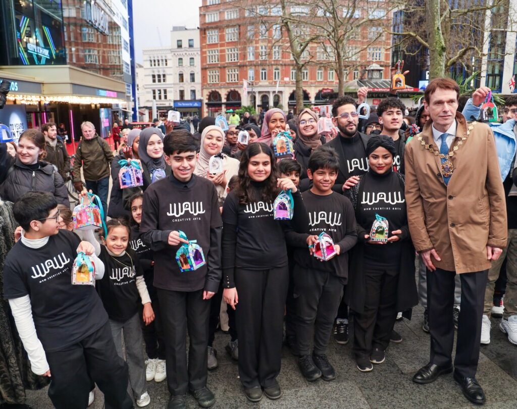 สมาชิกสภาเมืองโรเบิร์ต ริกบี้ นายกเทศมนตรีเวสต์มินสเตอร์ นำขบวนโคมไฟของเด็กนักเรียนในเลสเตอร์สแควร์ ก่อนจะร่วมกันเปิดไฟของการติดตั้งแบบโต้ตอบในช่วงบ่ายวันพุธ ไม่ไกลนัก กษัตริย์ชาร์ลส์ที่ 3 และสมเด็จพระราชินีคามิลลาทรงทำส่วนของพระองค์เพื่อเฉลิมฉลองช่วงรอมฎอนที่กำลังจะมาถึง โดยทรงช่วยบรรจุหีบห่อบริจาคอาหารที่ร้านอาหารอินเดียในย่านโซโห