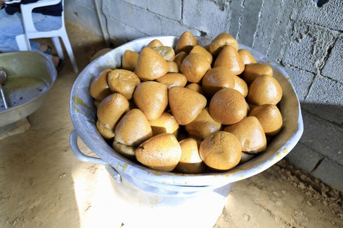 คนอื่นๆ จะนวดแป้งและปั้นเป็นก้อนใหญ่ๆ ที่ดูเหมือนเกี๊ยวขนาดยักษ์เพื่ออบหรืออบไอน้ำ เมื่อพร้อมแล้ว อาสาสมัครคนอื่นๆ จะแจกบาซินให้กับผู้คนที่ยืนเข้าแถวอยู่ด้านนอก ซึ่งรอคอยที่จะนำกลับบ้านไปรับประทานในช่วงอิฟตาร์