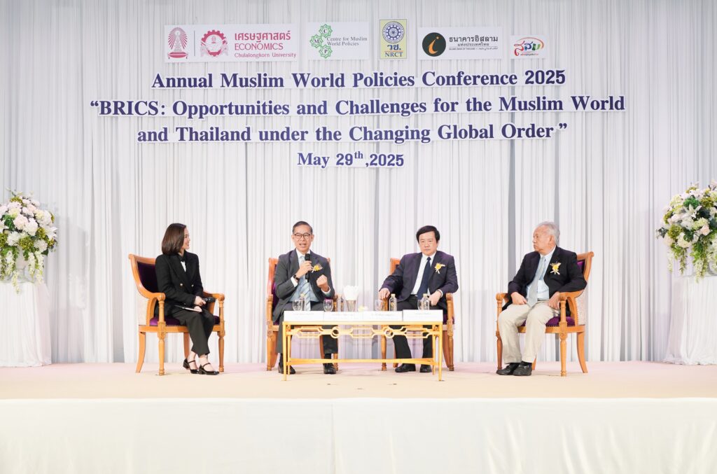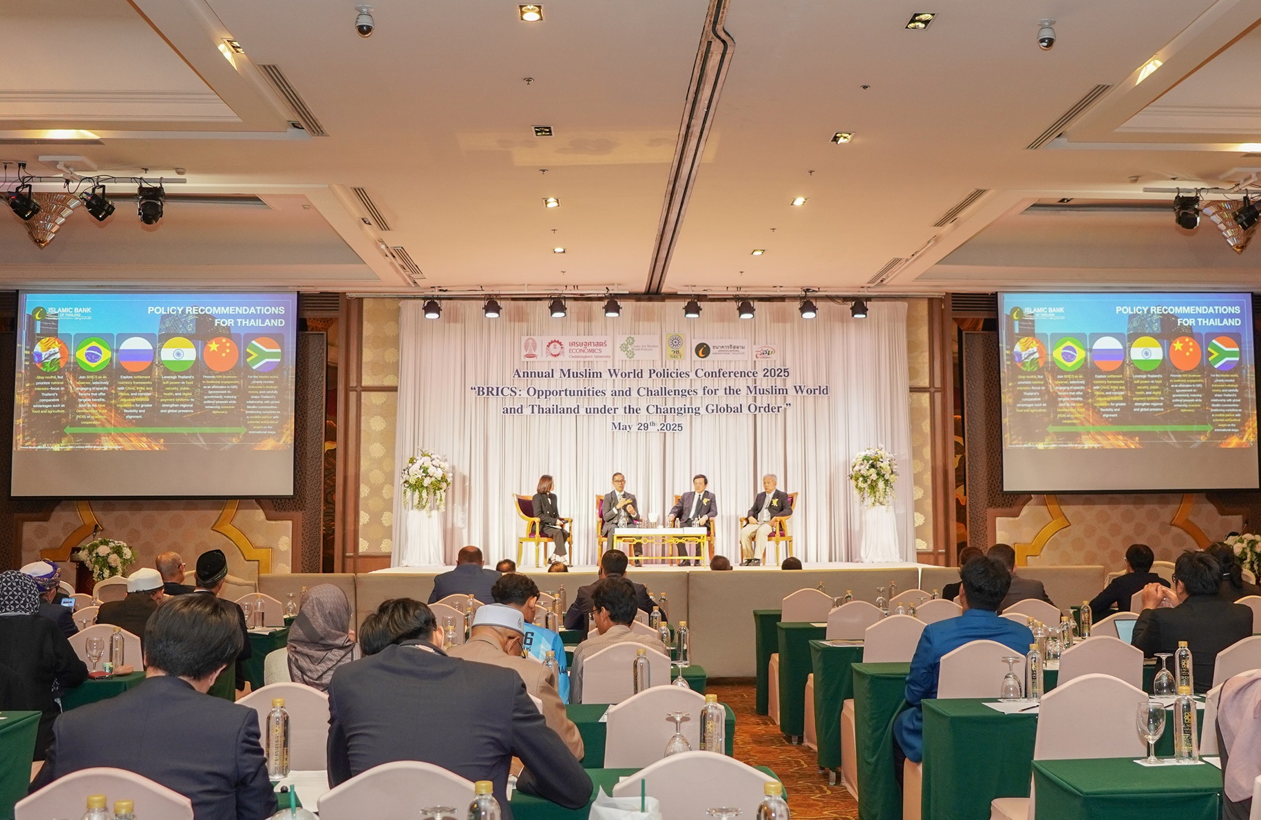 ธนาคารอิสลามแห่งประเทศไทย (ไอแบงก์) โดย ดร.ทวีลาภ ฤทธาภิรมย์ กรรมการและผู้จัดการธนาคาร เข้าร่วมการประชุมวิชาการโลกมุสลิม ประจำปี 2568 เรื่อง “BRICS โอกาสและความท้าทายต่อโลกมุสลิมและประเทศไทยภายใต้ระเบียบโลกที่เปลี่ยนไป” จัดโดย ศูนย์นโยบายโลกมุสลิม คณะเศรษฐศาสตร์ จุฬาลงกรณ์มหาวิทยาลัย เพื่อศึกษาผลกระทบจากอิทธิพลที่เพิ่มขึ้นของ BRICS ต่อโลกมุสลิมและประเทศไทย โดยมุ่งเน้นที่โอกาสทางเศรษฐกิจ การเมือง และเทคโนโลยี รวมถึงความท้าทายที่เกิดจากพลศาสตร์โลกที่กำลังเกิดขึ้นในปัจจุบัน ซึ่งมีนายดนัย มู่สา ประธานกรรมการศูนย์นโยบายโลกมุสลิม คณะเศรษฐศาสตร์ จุฬาลงกรณ์มหาวิทยาลัย กล่าวต้อนรับ รองศาสตราจารย์ ดร. สิทธิเดช พงศ์กิจวรสิน รองอธิการบดี ด้านการจัดการทรัพย์สิน จุฬาลงกรณ์มหาวิทยาลัย กล่าวเปิดงาน และได้รับเกียรติจาก H.E  Evgeny Tomikhin เอกอัครราชทูตรัสเซียประจำประเทศไทย ให้เกียรติปาฐกถานำในเรื่องดังกล่าว และตลอดการประชุมมีการอภิปรายในหัวข้อต่าง ๆ อาทิ ร่วม BRICS ผลต่อโลกมุสลิมและไทย เข้า BRICS ไทยได้อะไร และมอง BRICS ผ่านเลนส์การเมืองไทย ซึ่งจัดขึ้นในวันพฤหัสบดีที่ 29 พฤษภาคม 2568 ณ ห้องแกรนด์ มีรอซ 1 ชั้น 3 โรงแรมอัล มีรอซ รามคำแหง ซอย 5 กรุงเทพฯ