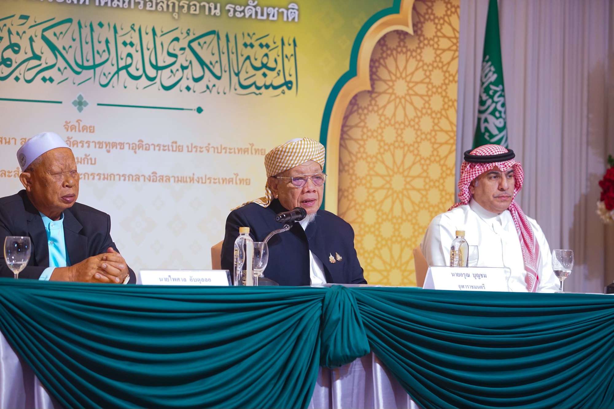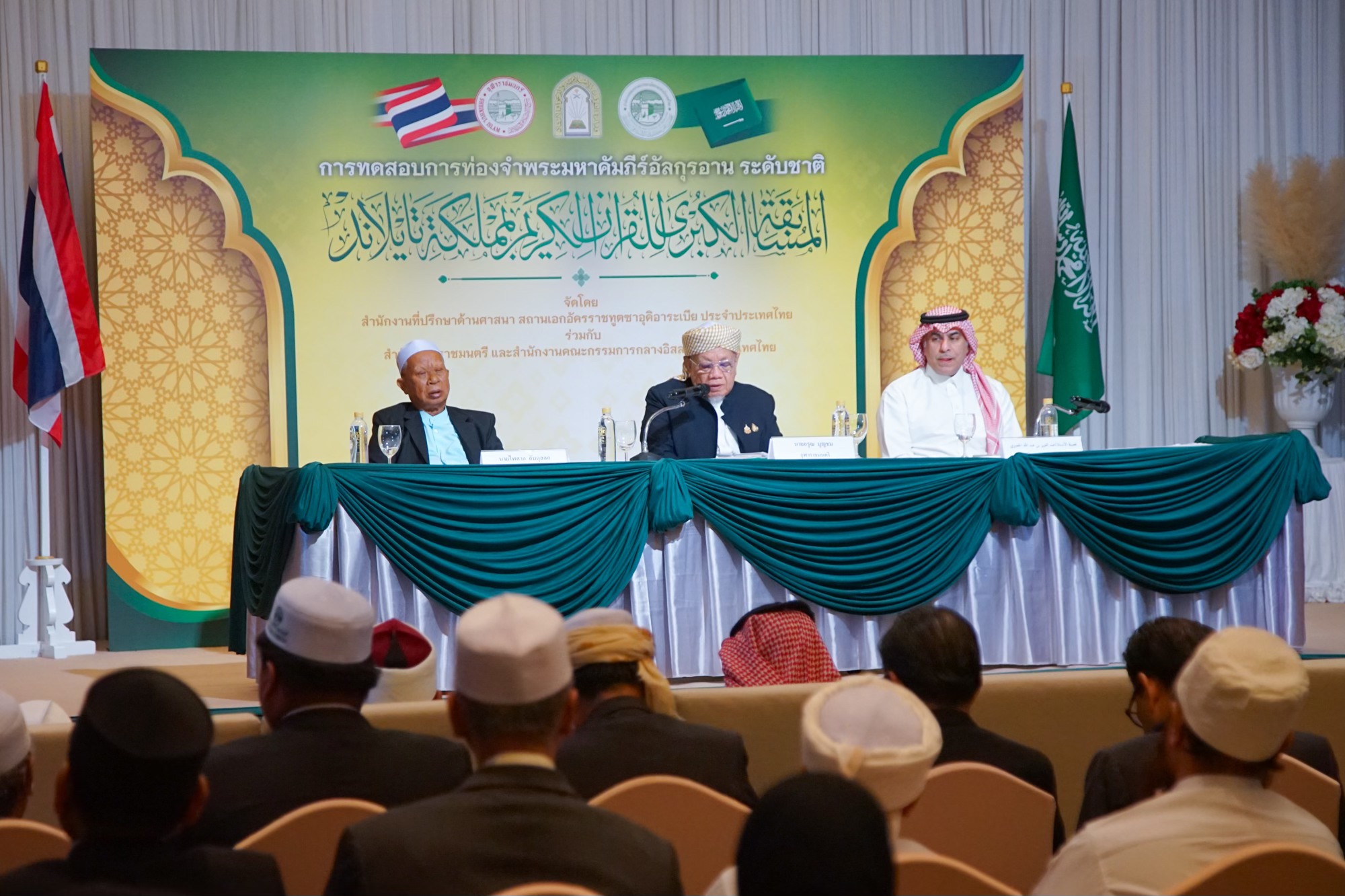 วันที่ 17 มิถุนายน 2568 เวลา 10.00 น. สำนักงานที่ปรึกษาด้านศาสนา สถานเอกอัครราชทูตซาอุดิอาระเบียประจำประเทศไทย ร่วมกับ สำนักจุฬาราชมนตรี และสำนักงานคณะกรรมการกลางอิสลามแห่งประเทศไทย จัดงานแถลงข่าว “โครงการทดสอบท่องจำพระมหาคัมภีร์อัลกุรอานระดับชาติ ครั้งที่ 2” ณ โรงแรมอัลมีรอซ ถนนรามคำแหง กรุงเทพมหานคร โดยมีนายอรุณ บุญชม จุฬาราชมนตรี นายอับดุลอะซีซ อับดุลเลาะห์ อัลคุเดร อุปทูตซาอุดิอาระเบียประจำประเทศไทย และนายไพศาล อับดุลลอ รองประธานคณะกรรมการกลางอิสลามแห่งประเทศไทย ร่วมให้เกียรติในการแถลงข่าว พร้อมด้วยคณะสื่อมวลชน ผู้แทนองค์กร และแขกผู้มีเกียรติเข้าร่วมงาน